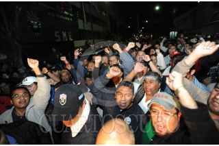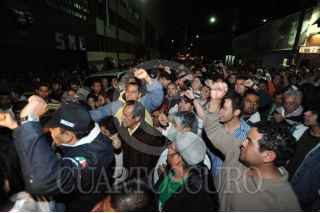 MÉXICO, D.F., 11OCTUBRE2009.- Cientos de personas se dieron cita a las afueras del Sindicato Mexicano de Electricistas (SME), donde se realizó una sesión extraordinaria encabezada por su líder sindical Martín Esparza, en la cuál se dió a conocer que acudirán al Congreso de la Unión para solicitar apoyo de legisladores a fin de evitar el cierre de Luz y Fuerza del Centro y su liquidación. FOTO: SÁSHENKA GUTIÉRREZ/CUARTOSCURO.COM