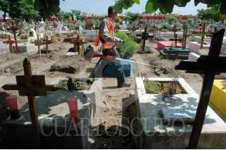 VERACRUZ, VERACRUZ, 12OCTUBRE2009.- Inicio la campaña de limpieza y fumigación en panteones para erradicar al mosco transmisor del dengue. FOTO: JOSE CANDELARIO/CUARTOSCURO.COM