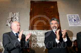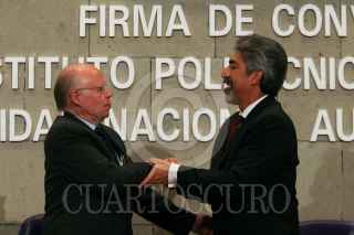MÉXICO, DF, . 12OCTUBRE2009.- José Narro Robles, Rector de la UNAM, acompañado de José Enrique Villa Rivera, Director General del IPN, en las oficinas de la dirección general del IPN, donde firmaron un convenio de colaboración tecnológica entre estas instituciones educativas. FOTO: GUILLERMO PEREA/CUARTOSCURO.COM