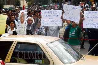 MÉXICO, D.F., 12OCTUBRE2009.- Integrantes del sindicato de luz y fuerza del centro se concentraron en el monumento a la Revolución para después salir con dirección a la Cámara de Diputados donde se manifestaron por la liquidación y desaparición de esta empresa. FOTO: LUIS CARBAYO/CUARTOSCURO.COM