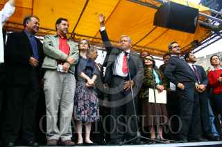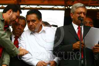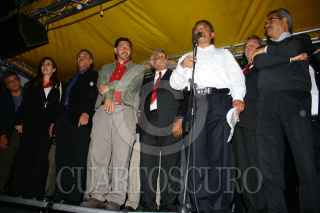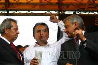 MÉXICO, D.F., 12OCTUBRE2009.- Martin Esparza lider de los electricistas, durante el mitin que encabezo Andres Manuel Lopez Obrador esta tarde a las afueras del palacio legislativo de San Lázaro. FOTO: SÁSHENKA GUTIÉRREZ/CUARTOSCURO.COM