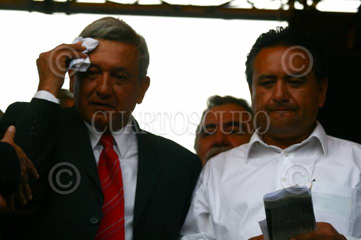 MÉXICO, D.F., 12OCTUBRE2009.- Martin Esparza lider de los electricistas, durante el mitin que encabezo Andres Manuel Lopez Obrador esta tarde a las afueras del palacio legislativo de San Lázaro. FOTO: SÁSHENKA GUTIÉRREZ/CUARTOSCURO.COM