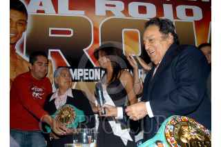MÉXICO, D.F., 13OCTUBRE2009.- El presidente de la WBC, José Sulaiman entregó a la madre de Esteban Cervantes Barrera quien enfrentó a un sujeto que disparó en los vagones del metro Balderas, un cinturón de oro, ya que el desaparecido fue boxeador. FOTO: SÁSHENKA GUTIÉRREZ/CUARTOSCURO.COM