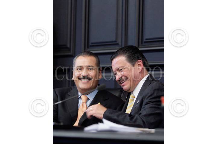 MÉXICO, D.F., 13OCTUBRE2009.- Tomás Torres Mercado junto a Pablo Gomez, ambos senadores del PRD durante la sesión donde se presentó el proyecto de decreto por el que se deroga la fracción XXVI del artículo 109, se añaden las fracciones XIX, XX y XXI al artículo 167 y se modifica el artículo 190 en sus párrafos décimo a treceavo, de la Ley del Impuesto sobre la Renta. FOTO: CUARTOSCURO.COM