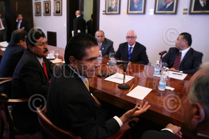 MÉXICO, D.F., 13OCTUBRE2009.- Tomás Torres Mercado junto a Pablo Gomez, ambos senadores del PRD durante la sesión donde se presentó el proyecto de decreto por el que se deroga la fracción XXVI del artículo 109, se añaden las fracciones XIX, XX y XXI al artículo 167 y se modifica el artículo 190 en sus párrafos décimo a treceavo, de la Ley del Impuesto sobre la Renta. FOTO: CUARTOSCURO.COM
