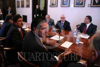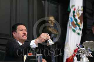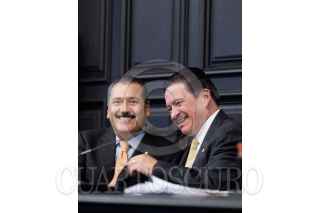 MÉXICO, D.F., 13OCTUBRE2009.- Tomás Torres Mercado junto a Pablo Gomez, ambos senadores del PRD durante la sesión donde se presentó el proyecto de decreto por el que se deroga la fracción XXVI del artículo 109, se añaden las fracciones XIX, XX y XXI al artículo 167 y se modifica el artículo 190 en sus párrafos décimo a treceavo, de la Ley del Impuesto sobre la Renta. FOTO: CUARTOSCURO.COM