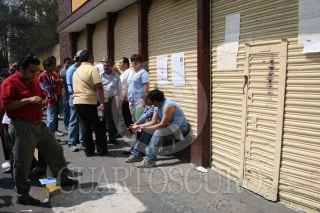 MÉXICO D.F. 14OCTUBRE2009.- Empleados de Luz y Fuerza del Centro que acudieron a la Sucursal Instalaciones Ixtacalco, hacen fila para realizar su tramite de liquidación, esto tras cinco días de que fuera nombrada la extinción de la paraestatal por decreto presidencial. FOTO: GUILLERMO PEREA /CUARTOSCURO.COM