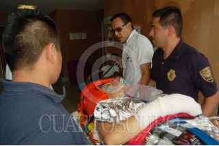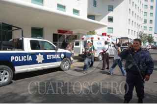 MORELIA, MICHOACÁN, 15OCTUBRE2009.- Fuerte movilización policíaca tras arribar a la capital michoacana, la alcaldesa de Tiquicheo, María Santos Gorrostieta Salazar, quien resultó gravemente herida en un ataque de manos de un comando armado, fue trasladada al Hospital Star Médica, mientras que su esposo José Sánchez Chávez fallecido debido a que recibió al menos cinco impactos de arma de fuego. FOTO: LEOVIGILDO GONZÁLEZ/CUAROSCURO.COM
