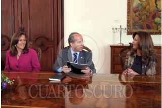 MEXICO, D.F., 15OCTUBRE2009.- Margarita Zavala, primera dama, Felipe Calderón Hinojosa, Presidente de México y Ana Franco de Wittmann, se reunieron con el comité organizador del "Foro Víctimas del Secuestro: Es Hora de Escuchar", el cual se realizó el pasado 30 de septiembre en el Instituto Nacional de Rehabilitación. FOTO: ARIEL GUTIERREZ/CUARTOSCURO.COM