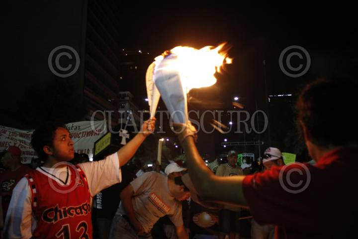 MEXICO, D.F., 15OCTUBRE2009.- Empleados de la compañía de Luz y Fuerza del Centro se manifestaron en una marcha que partió del ángel de la Independencia y culminó en el zócalo debido a que por decreto presidencial fue extinta con lo que más de 40 mil personas quedaron desempleadas. FOTO: ISAAC ESQUIVEL/CUARTOSCURO.COM
