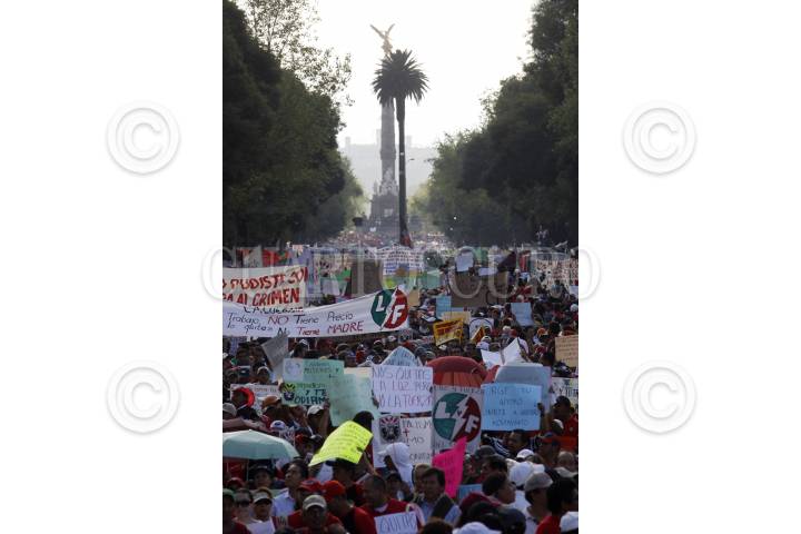 MEXICO, D.F., 15OCTUBRE2009.- Empleados de la compañía de Luz y Fuerza del Centro se manifestaron en una marcha que partió del ángel de la Independencia y culminó en el zócalo debido a que por decreto presidencial fue extinta con lo que más de 40 mil personas quedaron desempleadas. FOTO: ISAAC ESQUIVEL/CUARTOSCURO.COM