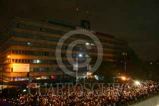 MÉXICO, D.F.,17OCTUBRE 2009.- Cientos de personas pertenecientes Sindicato de Mexicano de Electricistas (SME) se manifestaron a las afueras de las instalaciones administrativas y de operación de la compañía de Luz y Fuerza del Centro ubicadas en el Cruce de Circuito Interior y Marina Nacional. FOTO: SÁSHENKA GUTIÉRREZ/CUARTOSCURO.COM