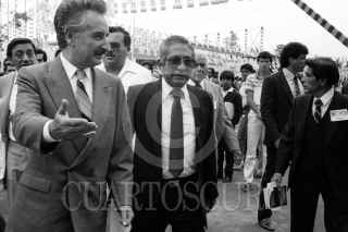 El Gobernador de Veracruz Fernando Gutiérrez Barrios y el líder del sindicato petrolero Joaquín Hernández Galicia "La Quina", durante el Día de la Unidad Priista.03SEP1987. Foto: Pedro Valtierra/CUARTOSCURO