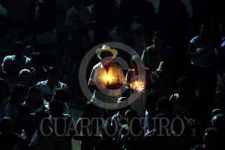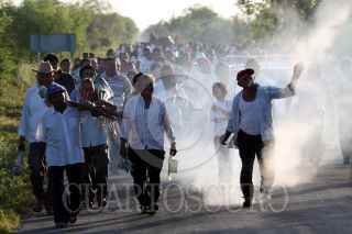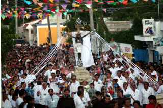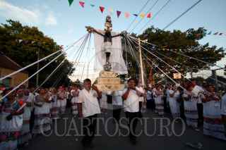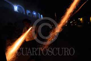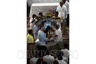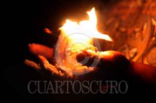 IZAMAL, YUCATAN, 20OCTUBRE2009.- Como todos los años, este 18 de octubre la Ciudad de los Cerros le otorgó la bienvenida al Santo Cristo Negro de Sitilpech, para mantener vigente una añeja tradición que se remonta al año de 1730. Como parte de esa centenaria costumbre, la imagen arribó en la tarde en procesión, en medio de fuegos artificiales, cantos de alabanza, oraciones, música de charanga y adornos. En octubre, la antigua Itzamatul se engalana para recepcionar a la imagen, en una festividad religiosa sin paralelo, pues una multitud recorre los seis kilómetros que separan a Sitilpech de la cabecera municipal para "pedir prestada" a la imagen. FOTO: ELIZABETH RUÍZ/CUARTOSCURO.COM