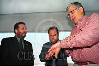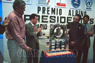 Nelson Vargas, presidente de la (CODEME), Daniel Aceves Villagrán, presidente de la AMMO, entregaron el trofeo del premio Alpino a Ricardo Torres Nava. FOTO: Sandra Perdomo/CUARTOSCURO.COM