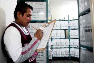 VILLAHERMOSA, TABASCO, 21OCTUBRE2009.- El bodeguero electoral del Instituto Electoral y Participación Ciudadana (IEPCT) es el encargado de proveer las distintas casillas con las boletas que contienen las votaciones para diputados y ediles municipales en este proceso electoral de los tabasqueños. FOTO: MARCO POLO GUZMÁN HERNÁNDEZ/CUARTOSCURO.COM