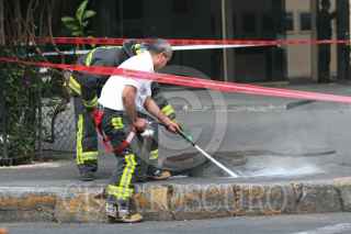 MÉXICO, D.F., 21OCTUBRE2009.- Intensa movilización de elementos de bomberos y trabajadores de la Comisión Federal de Electricidad, causó la explosión de unas mufas ubicadas en la calle de Rosales y la calle de Edison en la colonia Tabacalera FOTO: SAÚL LÓPEZ/CUARTOSCURO.COM