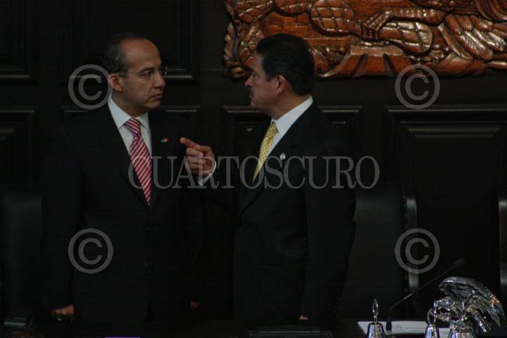 MÉXICO, D.F., 22OCTUBRE2009.- Miguel Angel Granados Chapa saluda a Antonio Ortiz Salinas hijo de Antonio Ortiz Mena quien recibió, post mortem, la medalla Belisario Domínguez. FOTO:ESSENE HERNÁNDEZ CASTAÑÓN/CUARTOSCURO.COM