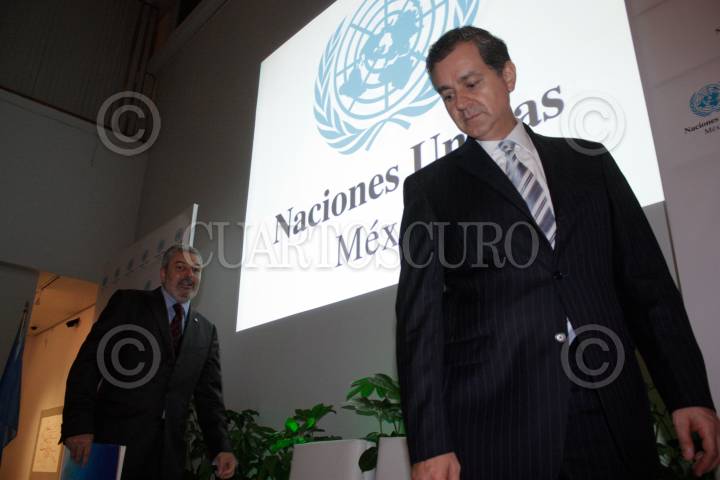 MÉXICO, D.F., 23OCTUBRE2009.- Philipe Lamy, representante de la OPS/OMS en México, José Angel Cordova Villalobos, Secretario de Salud, Juan Rafael Elvira Quesada, secretario de Medio Ambiente y Recursos Naturales y Mara Murillo, representante del PNUMA recibierón el premió " Mas México en Naciones Unidas, Más Naciones Unidas en México" 2009, en el Museo Diego Rivera. FOTO: ESSENE HERNÁNDEZ CASTAÑÓN/ARCHIVO/CUARTOSCURO.COM