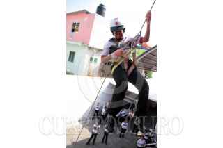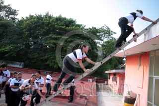 VILLAHERMOSA, TABASCO, 24OCTUBRE2009.- La Cruz Roja Delegación Villahermosa realiza practicas estrictas de medidas emergentes con la intención de preparar adecuadamente al personal de socorrismo y estudiantes por egresar de su escuela capacitadora. Aquí los instructores de la benemérita enseñan los conocimientos al que diariamente se enfrentan o pudieran ocurrir al atender un llamado de auxilio de cualquier parte de la población; y es por eso que los rápeles son la disciplina por su peligrosidad que practican más arduamente. FOTO: MARCO POLO GUZMÁN HERNÁNDEZ/CUARTOSCURO.COM