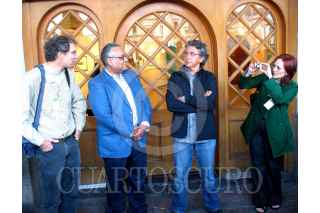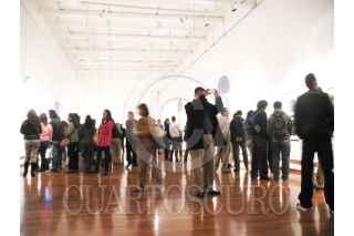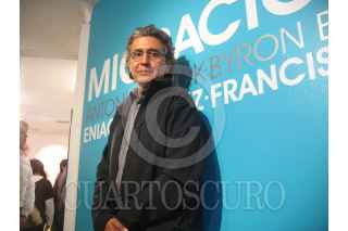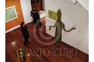 PACHUCA, HIDALGO, 24OCTUBRE2009.- Byron Brauchly, durante la inauguración el día de ayer en la galería Leo Acosta de la exposición: “Migraciones” de Antonio Turok, Eniac Martínez, la exposición estará en Pachuca hasta el día 23 de noviembre. FOTO: MARIA DI PAOLA BLUM/CUARTOSCURO.COM