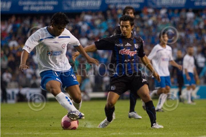 QUERETARO, QUERETARO, 24OCTUBRE2009.- Aspectos del partido de fútbol de primera división entre los "Gallos Blancos" de Querétaro contra "La Maquina Celeste" de Cruz Azul, correspondiente a la fecha 13 del torneo Apertura 2009 celebrado en medio de una constante lluvia en el estadio de la Corregidora de Querétaro, con un resultado final de 2 a 1 favor de los Gallos Blancos. FOTO: DEMIAN CHÁVEZ/CUARTOSCURO.COM