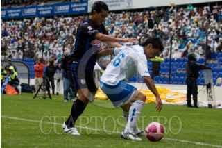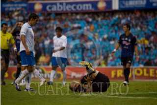 QUERETARO, QUERETARO, 24OCTUBRE2009.- Aspectos del partido de fútbol de primera división entre los "Gallos Blancos" de Querétaro contra "La Maquina Celeste" de Cruz Azul, correspondiente a la fecha 13 del torneo Apertura 2009 celebrado en medio de una constante lluvia en el estadio de la Corregidora de Querétaro, con un resultado final de 2 a 1 favor de los Gallos Blancos. FOTO: DEMIAN CHÁVEZ/CUARTOSCURO.COM