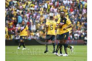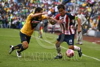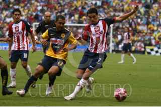 MÉXICO, D.F.,25OCTUBRE 2009.- Daniel Montenegro disputa el balón con Gonzalo Pineda durante el encuentro de las Águilas del América con las Chivas, partido de la jornada 13 del Torneo Apertura 2009. FOTO: SÁSHENKA GUTIÉRREZ/CUARTOSCURO.COM