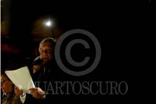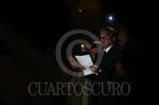 MÉXICO, D.F., 26OCTUBRE2009.- El ex candidato presidencial Andres Manuel Lopez Obrador en instalaciones del Senado de la República en donde se manifesto ademas de reiterar su apoyo a los electricistas y señaló que continuará participando en todas las movilizaciones de éstos y sus acciones de resistencia pacífica. FOTO: SÁSHENKA GUTIÉRREZ/CUARTOSCURO.COM