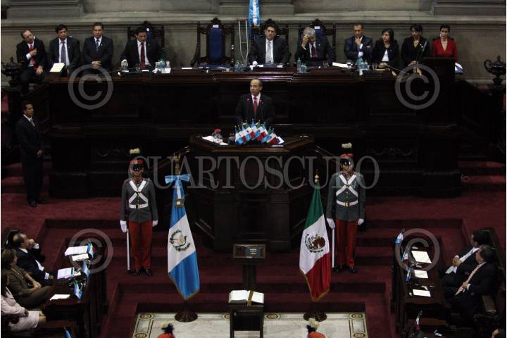GUATEMALA, GUATEMALA, 26OCTUBRE 2009.- Felipe Calderon Presidente de México, acompañado por Alvaro Colom Presidente de Guatemala, durante la firma de documentos y difusion del comunicado conjunto, que tovo lugar en el patio de cultura del palacio nacional de cultura FOTO: ALFREDO GUERRERO/CUARTOSCURO.COM