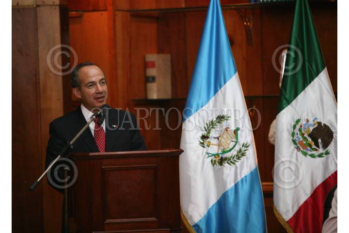 GUATEMALA, GUATEMALA, 26OCTUBRE 2009.- Felipe Calderon Presidente de México, acompañado por Alvaro Colom Presidente de Guatemala, durante la firma de documentos y difusion del comunicado conjunto, que tovo lugar en el patio de cultura del palacio nacional de cultura FOTO: ALFREDO GUERRERO/CUARTOSCURO.COM
