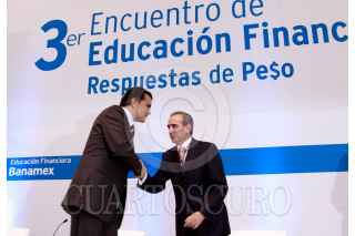 MÉXICO, D.F., 27OCTUBRE2009.- Alonso Lujambio, Secretario de Educación Pública, Alejandro Werner, subsecretario de Hacienda y Crédito Público y Andrés Albo, director de compromiso social de Banamex, al finalizar la ceremonia de inauguración del 3er Encuentro de Educación Financiera, encuentro auspiciado por esta institución, esto en el Centro Banamex. FOTO: MOISÉS PABLO/CUARTOSCURO.COM