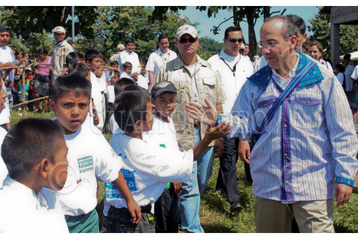 LA LIBERTAD, GUATEMALA, 27OCTUBRE2009.- Felipe Calderón, presidente de México, junto a su homologo de Guatemala, Alvaro Colom durante la inauguración del puerto fronterizo "El Ceibo" donde se realizo la colocación de la primera piedra en las instalaciones aduaneras de la entidad. FOTO: ALFREDO GUERRERO/CUARTOSCURO.COM