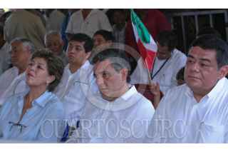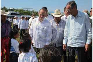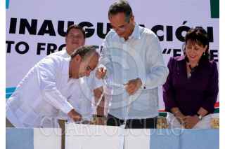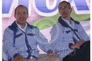 LA LIBERTAD, GUATEMALA, 27OCTUBRE2009.- Felipe Calderón, presidente de México, junto a su homologo de Guatemala, Alvaro Colom durante la inauguración del puerto fronterizo "El Ceibo" donde se realizo la colocación de la primera piedra en las instalaciones aduaneras de la entidad. FOTO: ALFREDO GUERRERO/CUARTOSCURO.COM