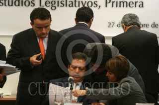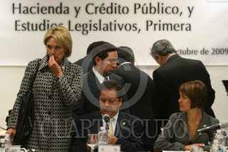 MÉXICO, D.F., 27OCTUBRE2009.- La Senadora Amira Gonzalez, José Isabel Trejo Presidente de la Comisión de Hacienda en la Cámara de Senadores conversa con la senadora Minerva Hernández durante la reunión de las comisiones unidas de Hacienda y Crédito Público. FOTO: SÁSHENKA GUTIÉRREZ/CUARTOSCURO.COM