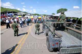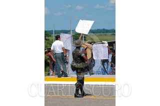 ZONA FRONTERIZA EL CEIBO, CENTROAMERICA, 27OCTUBRE2009.- Comerciantes de los países de México y Guatemala se manifestaron en contra al alza del 15 % en el impuesto al valor agregado (IVA), pidiendo que se respete el 10 por ciento como en las otras zonas fronterizas con México. Ante tal suceso tuvo que intervenir el Ejercito Mexicano para salvaguardar la integridad de los presidentes de México Felipe Calderón Hinojosa y de Guatemala Álvaro Colom. FOTO: MARCO POLO GUZMÁN HERNÁNDEZ/CUARTOSCURO.COM