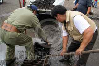 MÉXICO, D.F., 28OCTUBRE2009.- Trabajadores del Gobierno del Distrito Federal destaparon las coladeras de las afueras del mercado de Xochimilco como parte de labores de mantenimiento del lugar. FOTO: ENRIQUE ORDÓÑEZ/CUARTOSCURO.COM