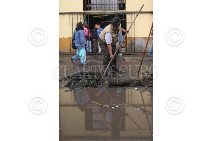 MÉXICO, D.F., 28OCTUBRE2009.- Trabajadores del Gobierno del Distrito Federal destaparon las coladeras de las afueras del mercado de Xochimilco como parte de labores de mantenimiento del lugar. FOTO: ENRIQUE ORDÓÑEZ/CUARTOSCURO.COM