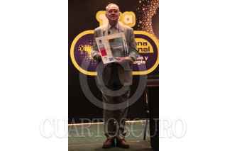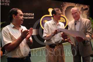 VILLAHERMOSA, TABASCO, 28OCTUBRE2009.- José Antonio Ruiz de la Herrán Villagómez, Investigador y creador del Telescopio mas grande de latinoamerica, recibió un reconocimiento por el aporte a la ciencia en manos del director nacional de Comunicación y Divulgación del Consejo de Ciencia y Tecnología; Miguel Ángel García. FOTO: MARCO POLO GUZMÁN HERNÁNDEZ/CUARTOSCURO.COM