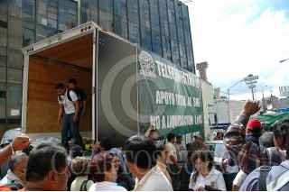 MÉXICO, D.F., 28OCTUBRE2009.- Agremiados al Sindicato de Telefonistas regalaron despensas a simpatizantes del Sindicato Mexicano de Electricistas (SME) en su sede sindical. FOTO: RODOLFO ANGULO/CUARTOSCURO.COM