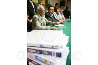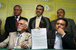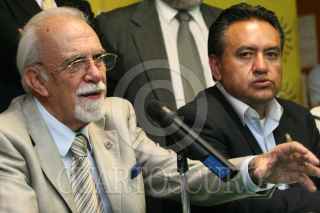 MÉXICO D.F., 28OCTUBRE2009.- Martín Esparza, Secretario General del SME, acompañado de los juristas, Raúl Carranca e Ignacio Burgoa y Nerstor del Bueno, acudieron a la Cmara de Diputados donde dieron a conocer detalles de la solicitud de juicio de amparo por el decreto de extinción de dominio, de Luz y Fuerza del Centro, que interpusieron en los Tribunales Federales. FOTO: GUILLERMO PEREA/CUARTOSCURO.COM