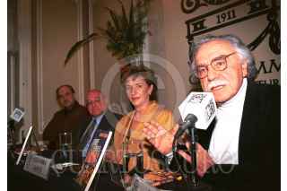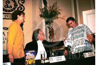 Durante la presentación del libro " Dónde se perdió el cambio" de Alejandra Lajous, Beatriz Paredes se despide de Carlos Payan exdirector del periodico la Jornada. FOTO: Eunice Adorno/CUARTOSCURO.COM