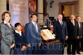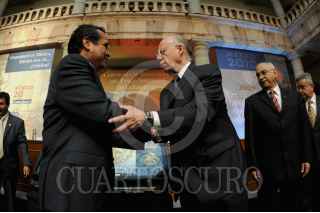 GUANAJUATO, GUANAJUATO, 28OCTUBRE2009.- Arturo López Lara Rector de la Universidad Autónoma de Guanajuato, y José Narro Robles, Rector de la Universidad Nacional Autónoma de México, durante su visita a la Biblioteca Amado Olivares Carrillo de la Unidad Belém, perteneciente a la Facultad de Arquitectura, donde tuvieron una reunión privada. FOTO: DAVID BOLAÑOS/CUARTOSCURO.COM