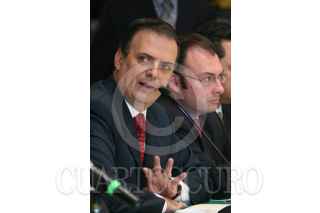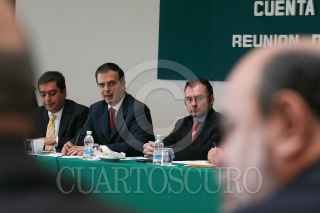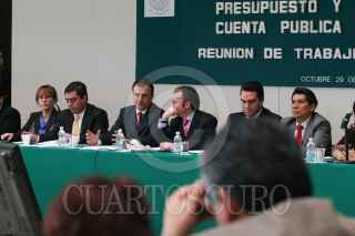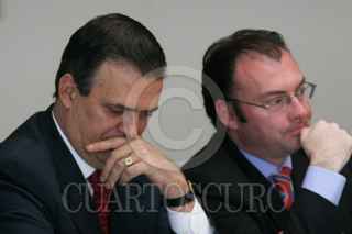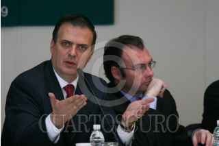 MÉXICO D.F., 29OCTUBRE2009.- Marcelo Ebrad Casaubon, Jefe del Gobierno del Distrito Federal, acudió a la Cámara de Diputados donde entrego la propuesta de su paquete presupuestal para el ejercicio del 2010, a integrantes de la Comisión de Presupuesto y Cuenta Publica, la cual es precedida por Luis Videgaray, Diputado del PRI. FOTO: GUILLERMO PEREA /CUARTOSCURO.COM