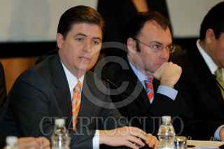 MÉXICO D.F., 29OCTUBRE2009.- Rodrigo Medina Cruz, Gobernador de Nuevo León, acudió a la Cámara de Diputados donde entrego la propuesta de su paquete presupuestal para el ejercicio del 2010, esto a integrantes de la Comisión de Presupuesto y Cuenta Publica, la cual es precedida por Luis Videgaray, Diputado del PRI. FOTO: GUILLERMO PEREA /CUARTOSCURO.COM