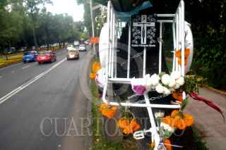 MÉXICO, D.F., 29OCTUBRE2009.- Familiares del Joven de oficio Panadero quien perdió la vida hace unos días en Paseo de la Reforma a la altura del Auditorio Nacional, colocaron una ofrenda en su Memoria en el lugar. FOTO: LUIS CARBAYO/CUARTOSCURO.COM