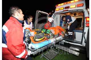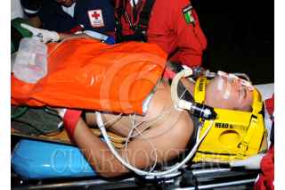 MÉXICO, D.F., 29OCTUBRE2009.- Cinco personas resultan con lesiones por disparos de arma de fuego, después de que se registrara un enfrentamiento a bordo de un autobús de la línea México Teotihuacan, con número económico 498. Pasajeros indicaron que dos sujetos acompañados de una mujer abordaron en la base de Indios Verdes y a partir del Kilómetro uno de la autopista México Pirámides, comenzaron a despojarlos de sus pertenencias. A lo que hizo frente un militar de nombre. Rafael Miralrio Jaimes de 25 años. Durante el fuego cruzado se lesionaron a otras personas entre estas Efrén Hernández Palacios de aproximadamente 50 años quienes fueron trasladados en Helicóptero al Hospital Militar y a Cruz Roja Polanco. FOTO: LUIS CARBAYO/CUARTOSCURO.COM