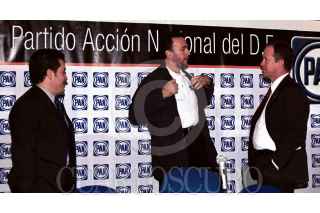 Carlos Medina Placencia y Jose Luis Luege Tamargo, presidente del PAN en el distrito federal, ofrecieron conferencia de presnsa, abordaron los temas de la inaguración del distribuidor víal, el caso de los amigos de Fox y la advertencia del gobierno capitalino del retiro de la propaganda electoral de lugares prohibidos. FOTO: Moisés Pablo/CUARTOSCURO.COM