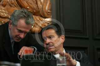 MÉXICO, D.F.,30OCTUBRE 2009.- El senador panista Santiago Creel conversa con el Senador Carlos Navarrete durante la sesión ordinaria en la que se pretende culminar el debate del paquete fiscal a un día que concluya el plazo legal para este procedimiento. FOTO: SÁSHENKA GUTIÉRREZ/CUARTOSCURO.COM