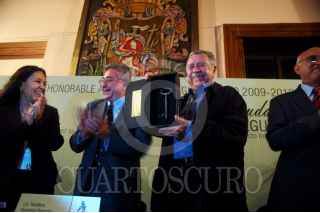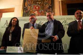 GUANAJUATO, GUANAJUATO, 30OCTUBRE2009.- Manuél Felguérez, artísta plástico, zacatecano, recibió esta noche las llaves de la ciudad de Guanajuato con la representación de su Presidente Municipal, Nicéforo Guerrero Reynoso, Lidia Camacho, Directora del Festival Internacional Cervantino, y Arturo Lara López, Rector General de la Universidad Autónoma de Guanajuato. FOTO: DAVID BOLAÑOS/CUARTOSCURO.COM